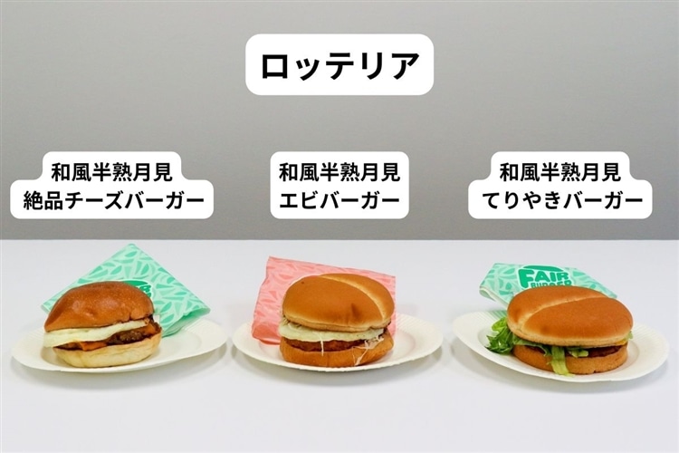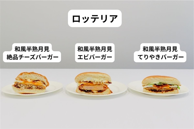 ロッテリア「和風半熟月見 絶品チーズバーガー」「和風半熟月見 エビバーガー」「和風半熟月見 てりやきバーガー」